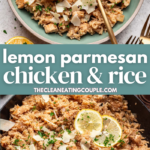This one pot lemon parmesan chicken and rice is the easiest weeknight meal. An easy high protein lemon chicken and rice meal.